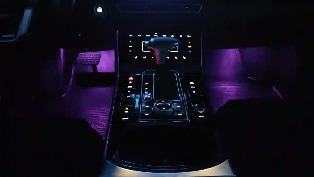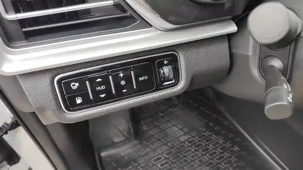 В левой части панели приборов можно найти блок оперативных (по мнению автопроизводителя) кнопок и регуляторов. С их помощью водитель может открыть лючок заправочной горловины, включить камеры кругового обзора, отрегулировать высоту и яркость проекции на лобовом стекле, приподнять либо приопустить свет фар.