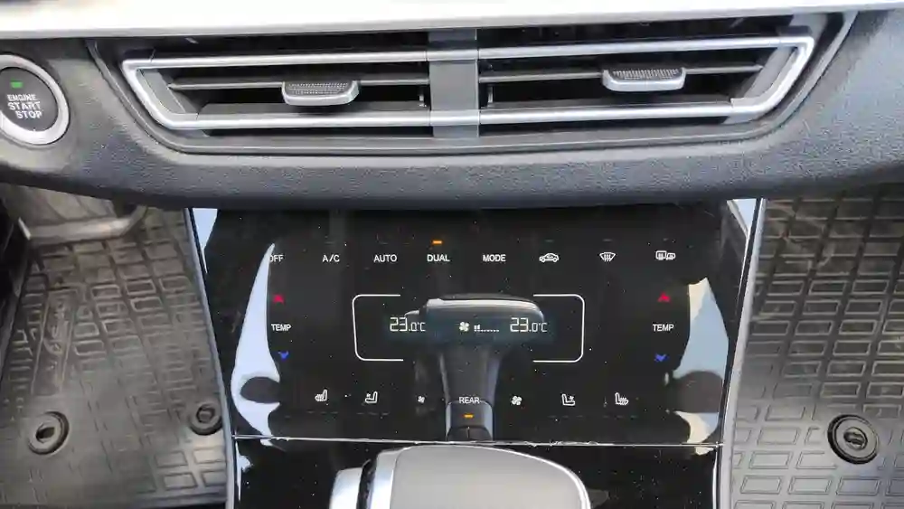 Все остальные кнопки сгруппированы на консоли между передними сиденьями, которая выглядит как отдельный пульт управления. Верхняя часть, наклонная, ведает двухзонным климатом. Все кнопки здесь сенсорные, но управлять отсюда можно всем, от температуры в салоне и силы обдува до подогрева и вентиляции передних сидений.