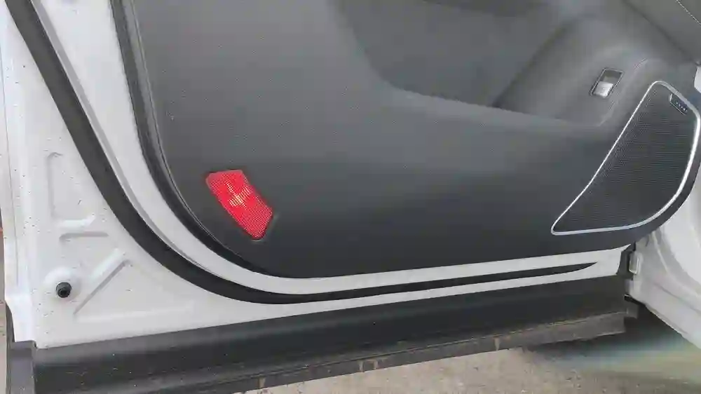 На торцах передних дверей пристроены красные фонарики. В темноте выходящему подсветят, куда лучше наступить. А тем, кто подъедет сзади, помогут определить габарит автомобиля.